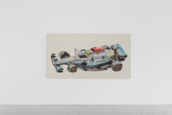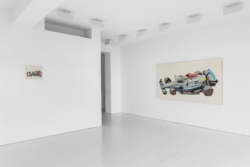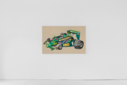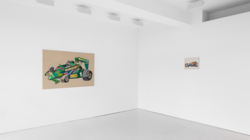 The presentation includes three paintings from Pace's ongoing "Formula One" car series, all painted in 2024. The opening date coincides with the Zoute Grand Prix, a much anticipated annual five-day automotive festival.