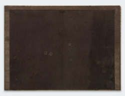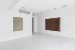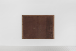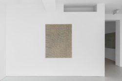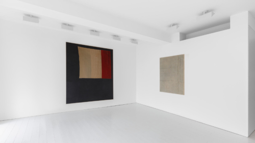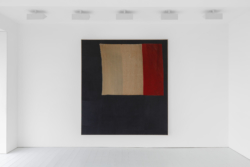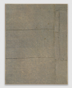 Often using recycled linen, wool and cotton, Calver is careful to allow his fabric’s previous life to show through with its textural nuances and history. Using processes including embroidery, stitching and sewing, as well as bleaching, dying and staining, he draws out striking, sensitive conjunctions of texture and tactility.